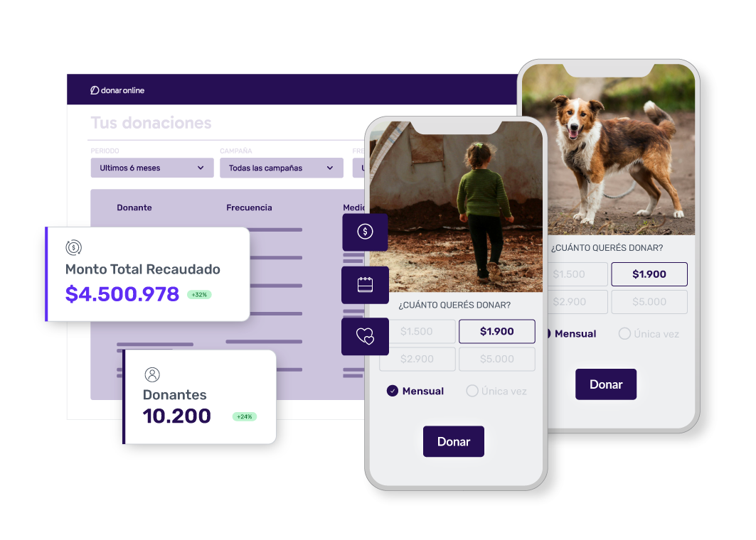 Toda la información de tus donantes y las donaciones que realicen, están disponibles en tu portal. Visualizar y modificar la información nunca fue tan fácil. Si tenés CRM podés sincronizarlo, y si no tenés, este panel te brinda toda la información necesaria para hacer un seguimiento de tus campañas.